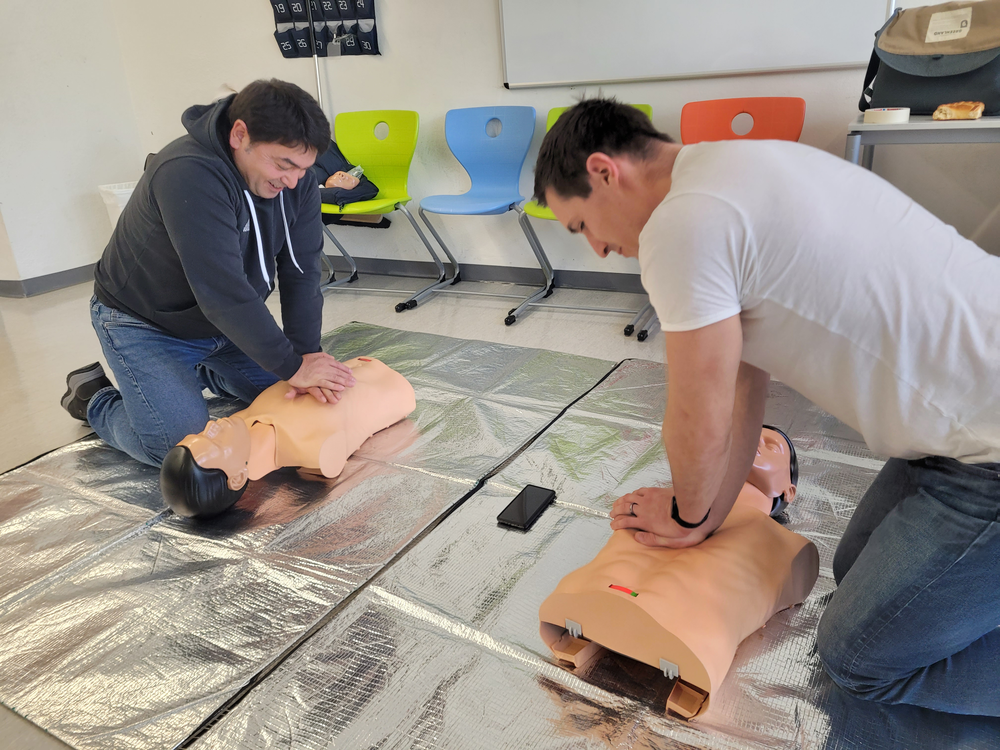 12 Lehrer*innen absolvierten in dieser Woche freiwillig einen Kurs des Roten Kreuzes. In der achtstündigen Schulung frischten die Lehrkräfte ihr Wissen im Bereich Erste Hilfe auf. Der Fokus lag insbesondere auf möglichen schulischen und außerschulischen Gefahrensituation und dem richtigen Handeln in derartigen Situationen. Inhalte waren beispielsweise: richtiges Verhalten bei unterschiedlichen (Arbeits-/) unfällen (bspw. amputierte Gliedmaßen), Wundverbandanlegen an unterschiedlichen Körperteilen, Herz-Lungen-Massage und Beatmung mithilfe und ohne Defibrillator. Die freiwillige Schulung der Lehrkräfte trägt zu mehr Sicherheit aller am Schulleben Beteiligten bei.